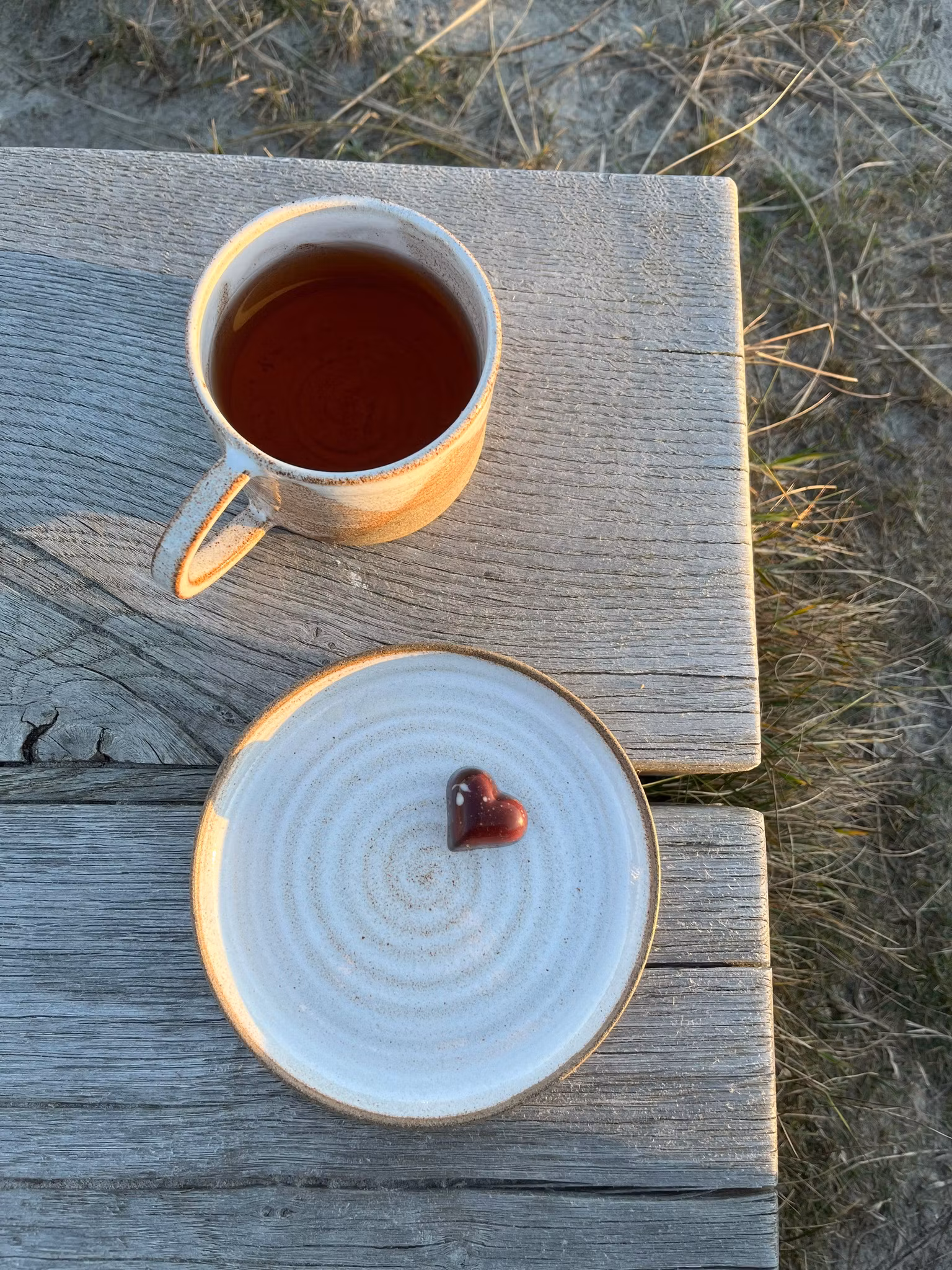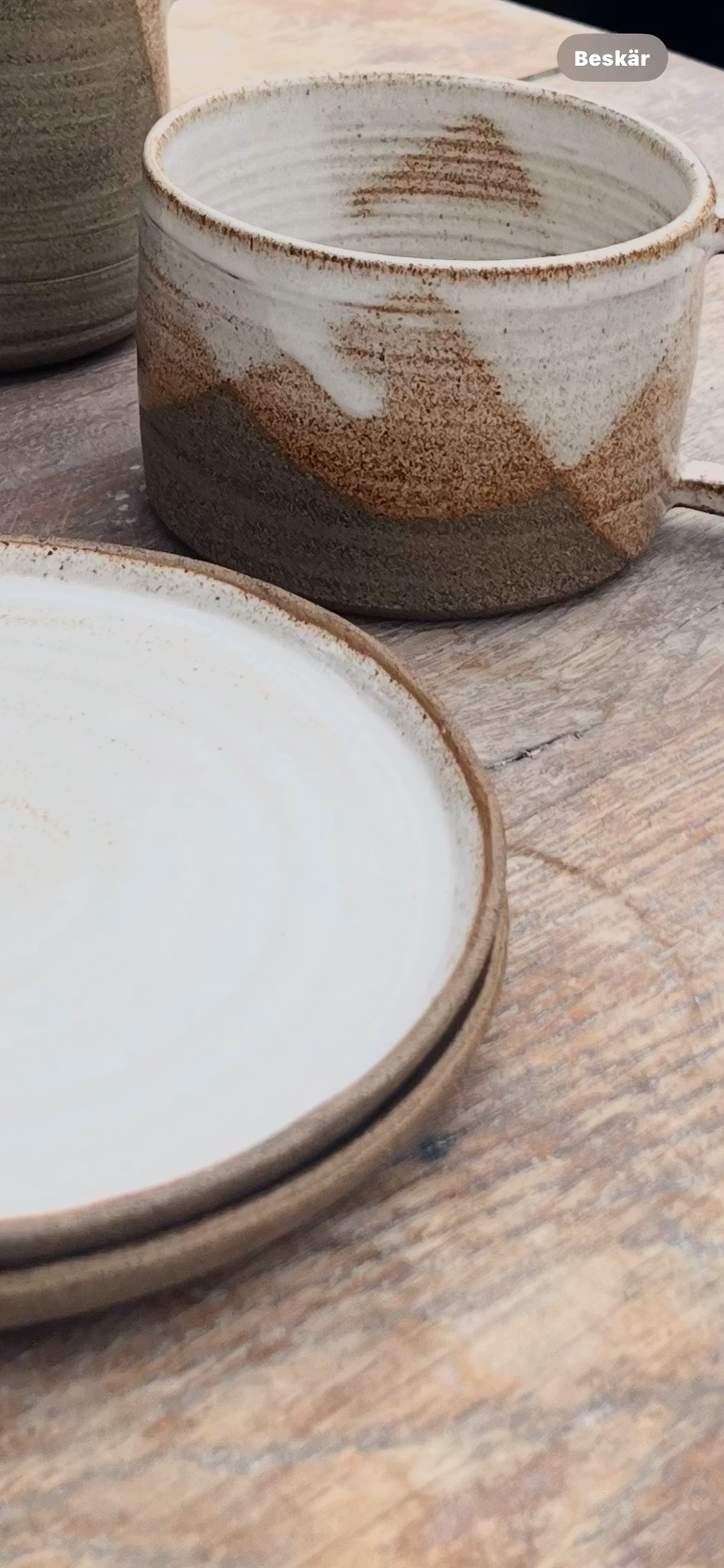 - Material: Rustik sandfärgad stengodslera med vit glasyr