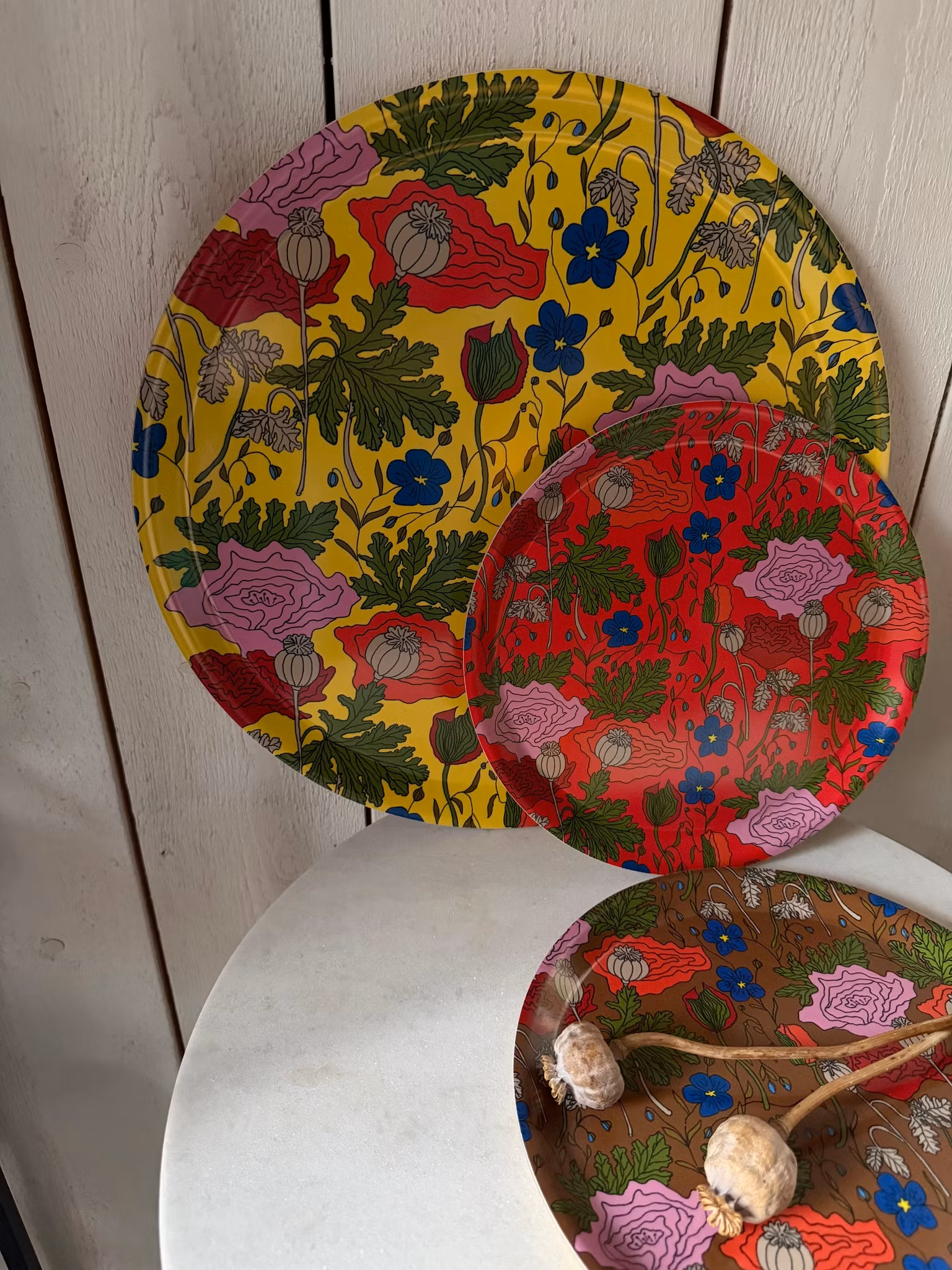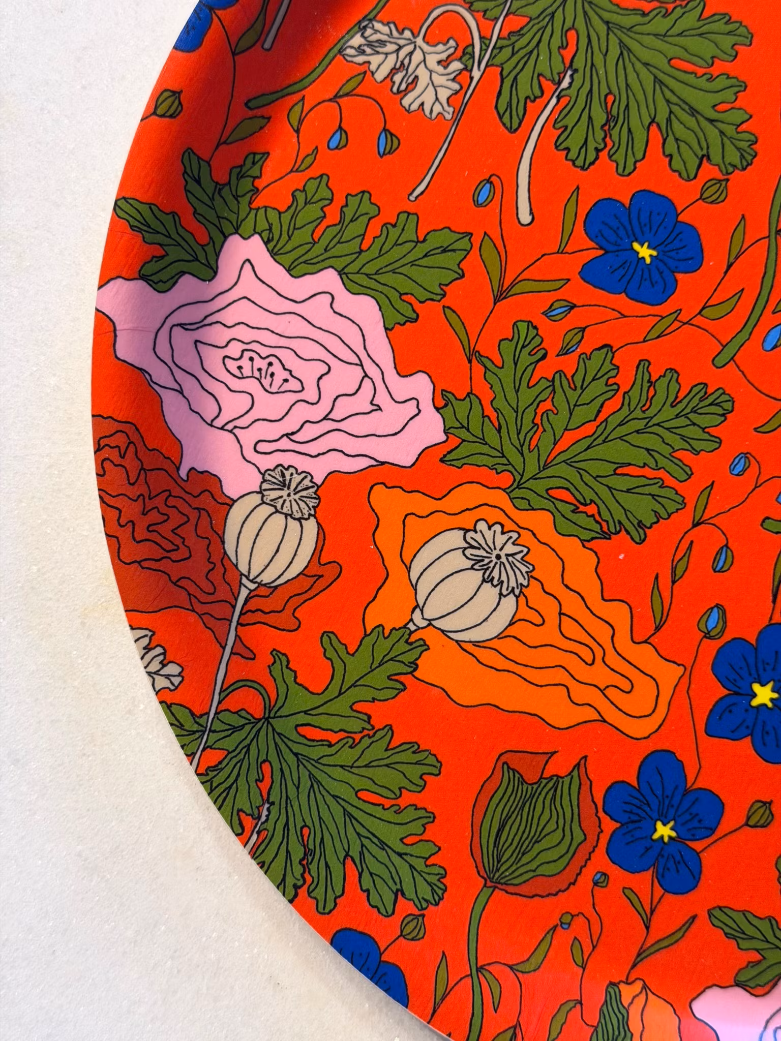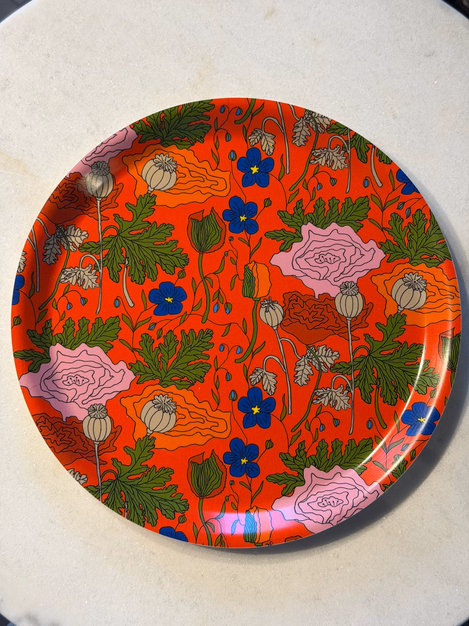 Vallmo/linblomma Bricka Rund Röd 25 cm