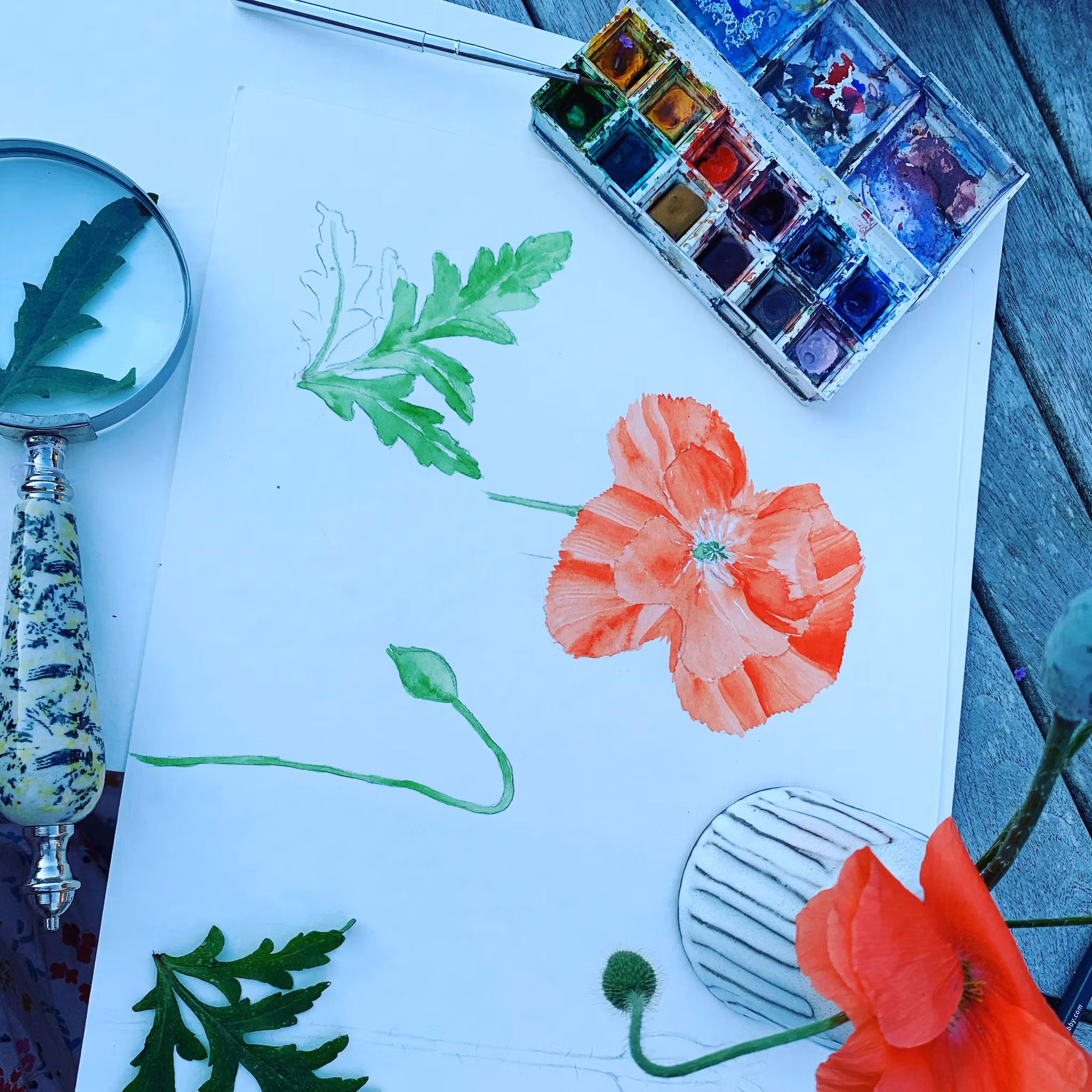 Härlig bricka med mönsterdesign ”Vallmo/linblomma”, skapad av mig Nina Melén. Inspirerad av sommarängens vallmoblommor, det tidlösa linnetyget och influenser av Medelhavet är detta mönster ritat av min hand med svart tusch och sedan färglagt i Photoshop för att fånga naturens livfulla färger.