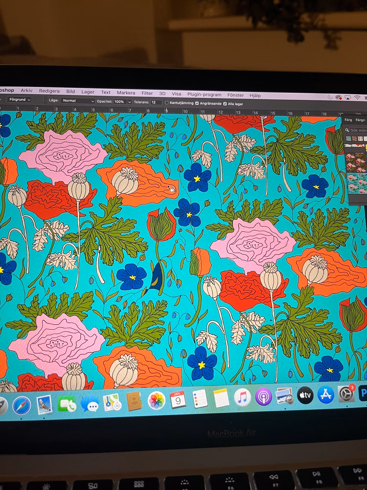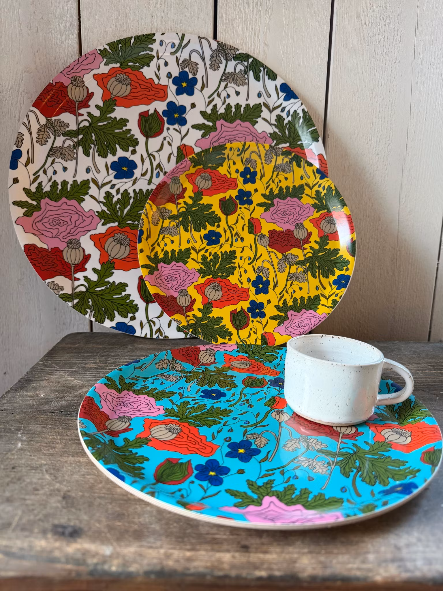 Vallmo/linblomma Bricka Rund Turkos 25 cm