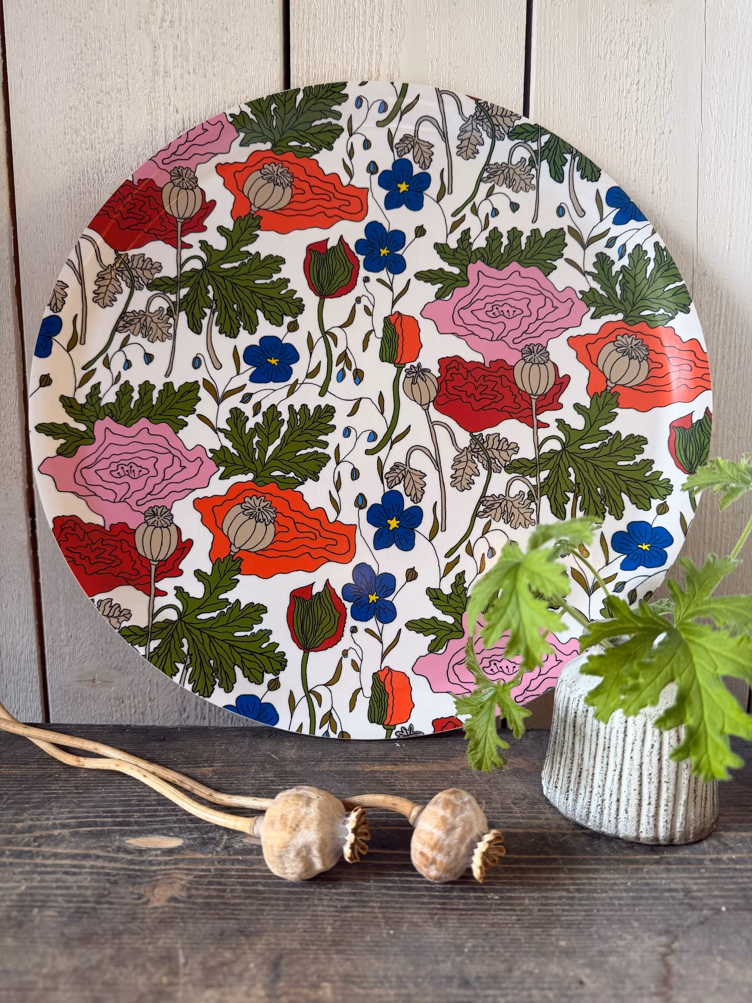 Vallmo/linblomma Bricka Rund Vit 38 cm